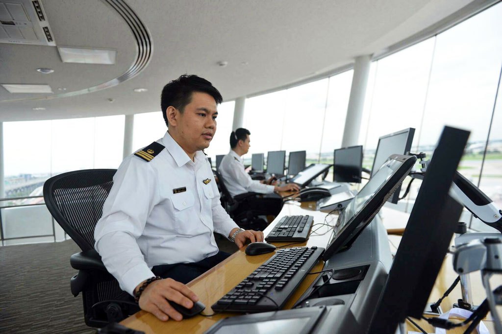 เจ้าหน้าที่ควบคุมการจราจรทางอากาศขณะปฏิบัติหน้าที่