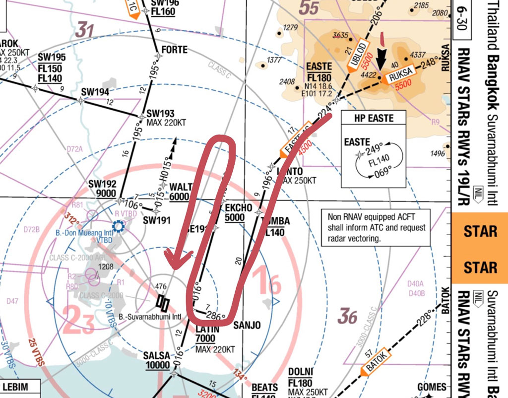 เส้นทางการบินร่อนลง ณ สนามบินสุวรรณภูมิ ทำไมต้องบินเป็นรูปตัว S..?