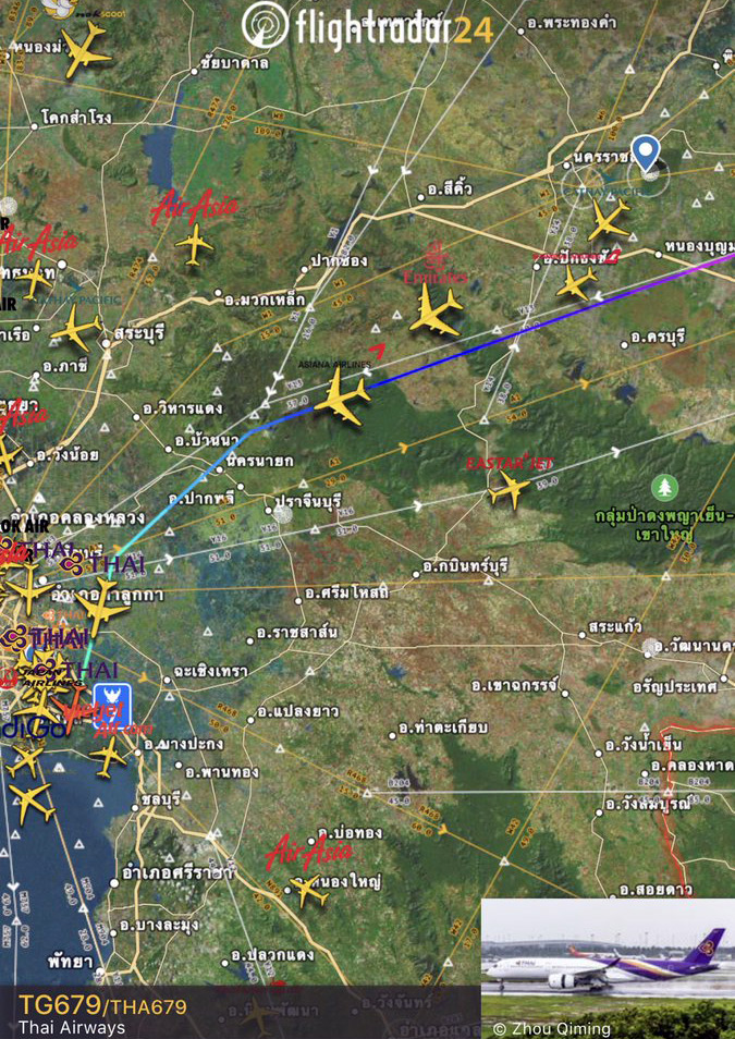 ถนนของเครื่องบินที่บินเข้าออกเหนือน่านฟ้าสุวรรณภูมิ