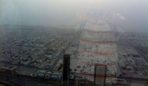 มองผ่านหน้าต่างแมนชั่นที่พักออกไปเห็นแต่ทะเลทรายเวิ้งว้างไกลสุดสายตา