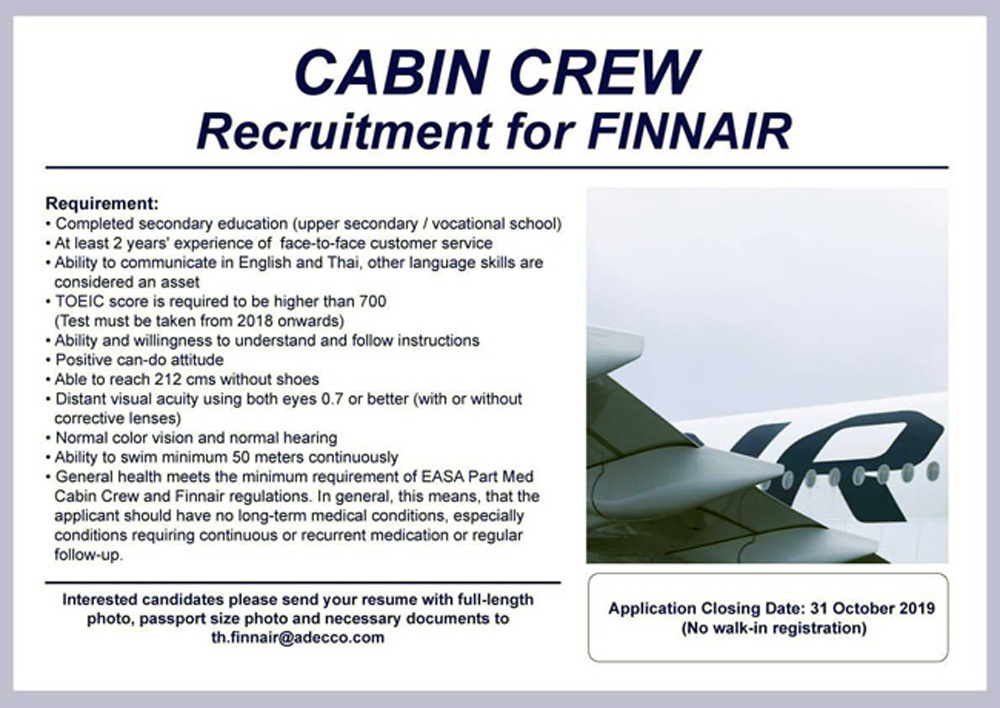 ไปยังอีเมล์ th.finnair@adecco.com ภายในวันที่ 31 ตุลาคม 2562 นี้