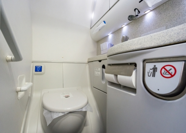 - ห้องน้ำมีน้อย อย่าใช้นาน ห้องน้ำบนเครื่องบิน ในชั้น Economy โดยเฉลี่ยแล้วจะมี 1 ห้องต่อผู้โดยสารประมาณ 28-30 คนครับ ดังนั้น อย่าใช้นานราวกับอยู่บ้าน เผื่อให้คนอื่นได้ใช้บ้าง รักษาความสะอาด และที่สำคัญคืออย่าทิ้งขยะลงไปในส้วม เพราะถ้ามันตันเนี่ย ห้องน้ำห้องนั้นต้องถูกปิดไปตลอดไฟลต์ครับ