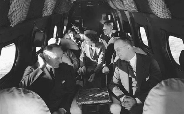 ภายในห้องโดยสารเครื่องบินยุคแรกๆ ที่แสนจะคับแคบและไม่สะดวกสบาย